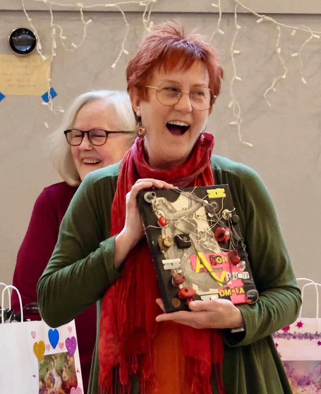 To participate, bring a small artwork (8 x 10 inches or thereabouts, we won’t measure) just prior to the start of the meeting. It will be placed in a decorated bag for another member to choose. The artwork can be Valentine-related or red or not, whatever you think another member might enjoy receiving, just something handmade. Previous popular items have included small paintings or sculptures or ornaments, pillows and homemade cheeses. Share your creativity with another member!